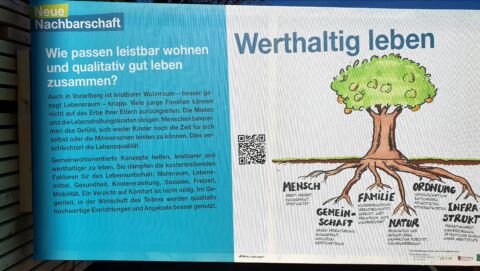 Eine Ausstellung vor dem Salvatorkolleg in Hörbranz regt an, die gängigen Formen des Wohnens und Zusammenlebens neu zu überdenken. Ein ernst zu nehmender Anstoß für einen chancenreichen Lebensraum für Kinder! Schließlich möchte auch die kommende Generation in Vorarlberg realistische Perspektiven zum Thema „Wohnen“ haben.